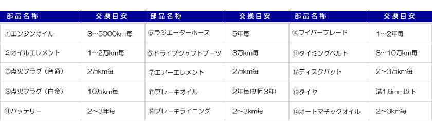 走行装置・暖衝装置タイヤ、ホイールなどの走行装置は、サ スペンション・アブソーバなどの暖衝装 置とともに、クルマを支える足廻りとし て、安全な走行に重要な役割を果たして ます。走行を重ねるうちに劣化する部品 がありますので、定期的な点検・整備が 必要です。 |